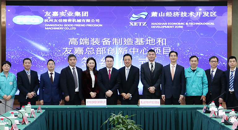 On December 12th, the signing ceremony for the high-end equipment manufacturing base and Hangzhou Good Friend headquarter innovation center projects was held at the Xiaoshan Economic and Technological Development Zone.